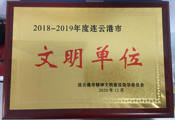 近日,連云港市精神文明建設指導委員會公布了2018-2019年度連云港市文明單位新命名名單,神特公司榜上有名,被評為“2018-2019年度連云港市文明單位”。