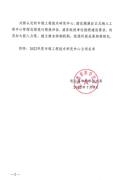 公司獲批市級工程技術研究中心