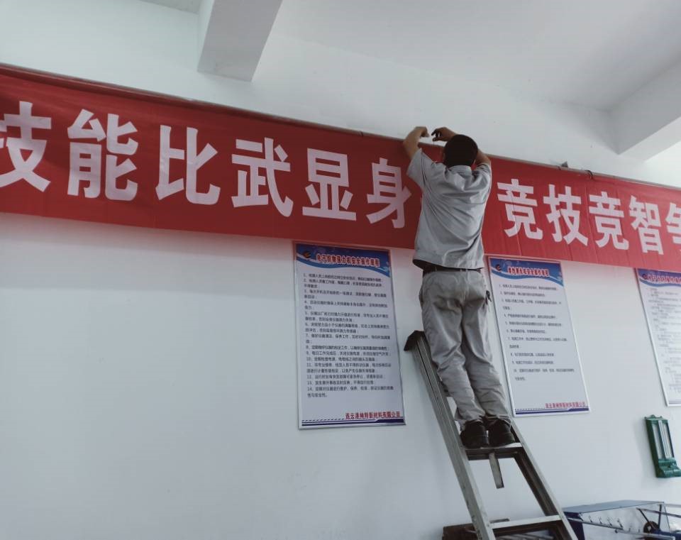 ? ? ? ? ??為營造技能大賽氛圍,77日上午,品質管理部特地請維修組件班組朱師傅、王師傅在品質管理部辦公區(qū)掛上宣傳橫幅。維修組件班組的兩位師傅不怕麻煩,多次調整橫幅的角度,力求做到盡善盡美,為營造技能大賽氛圍貢獻自己的力量。