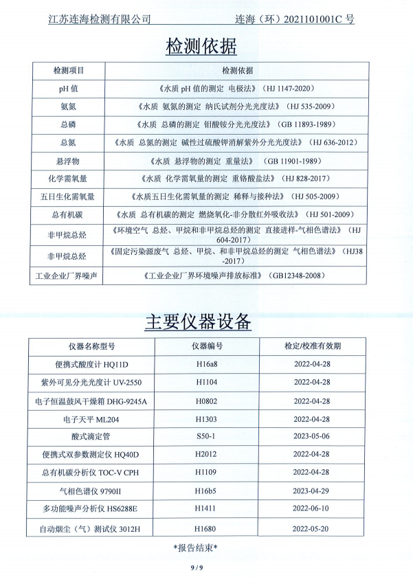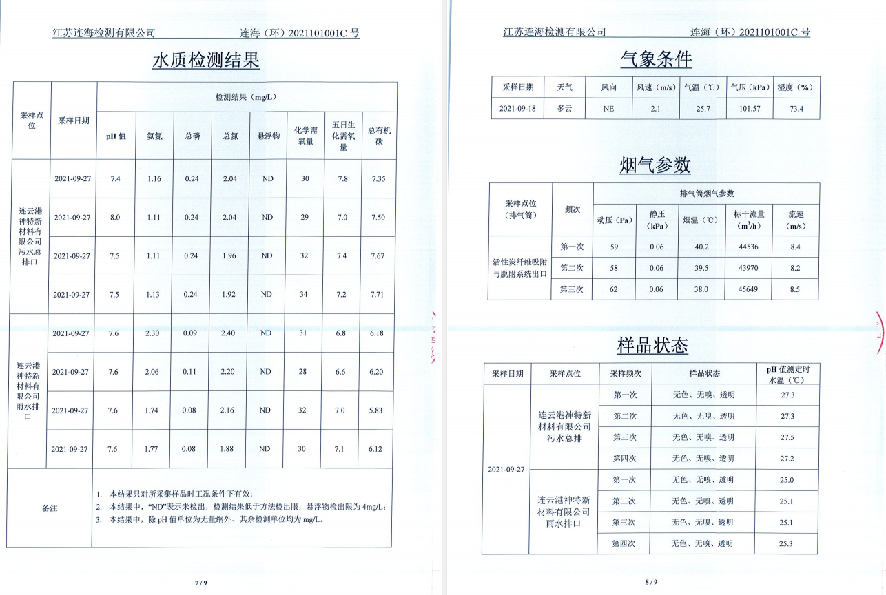 神特公司檢測報告公示
