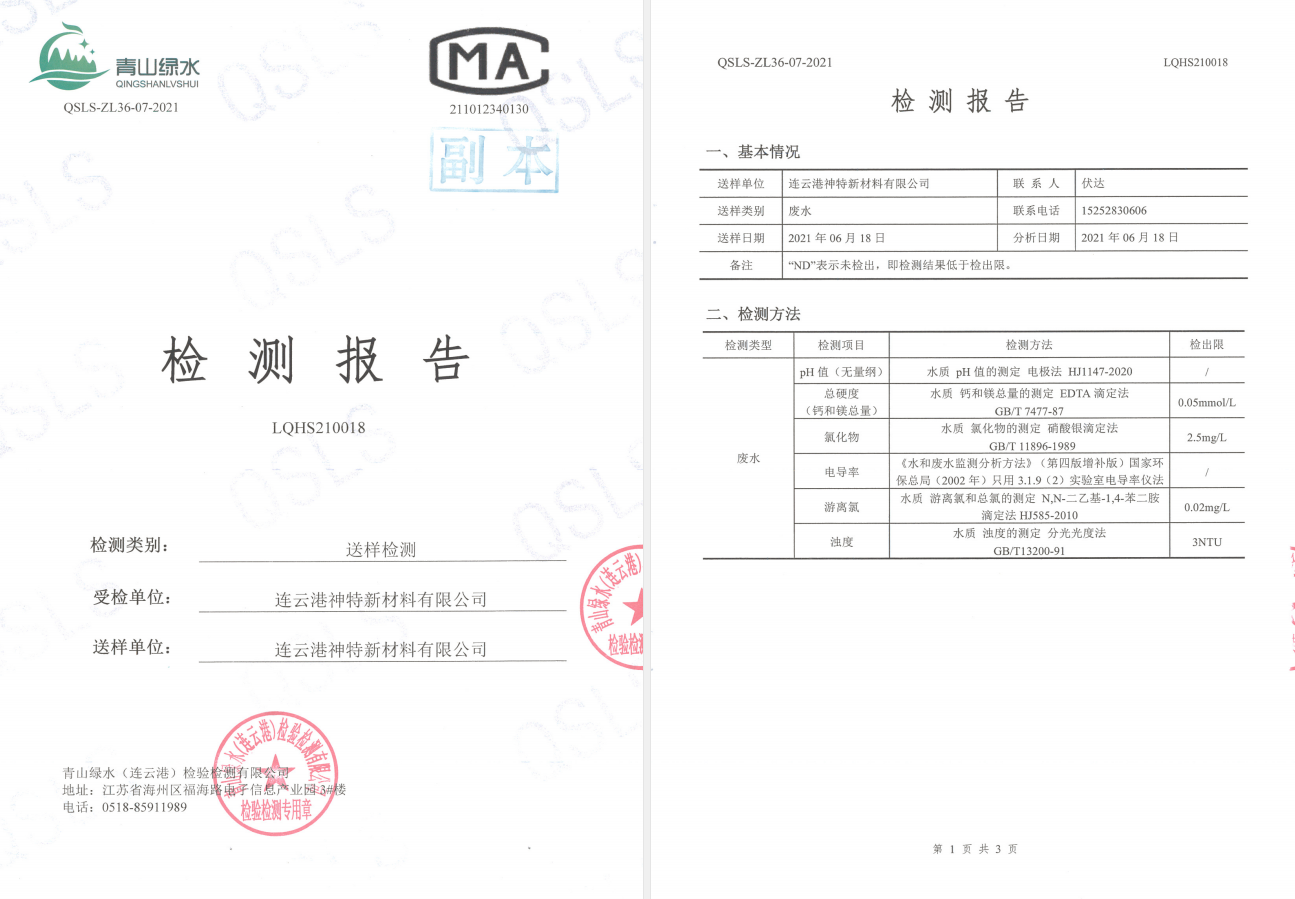 神特公司檢測報(bào)告公示