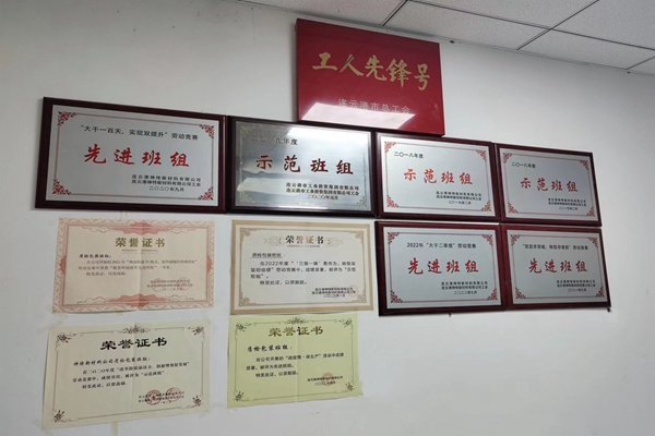 走進(jìn)質(zhì)檢辦公室,首先映入眼簾的就是這面榮譽(yù)墻,上面有近年來(lái)集團(tuán)頒發(fā)的“示范班組”和公司授予的各種榮譽(yù),還有一塊金字招牌,就是市總工會(huì)頒發(fā)的“工人先鋒號(hào)”。