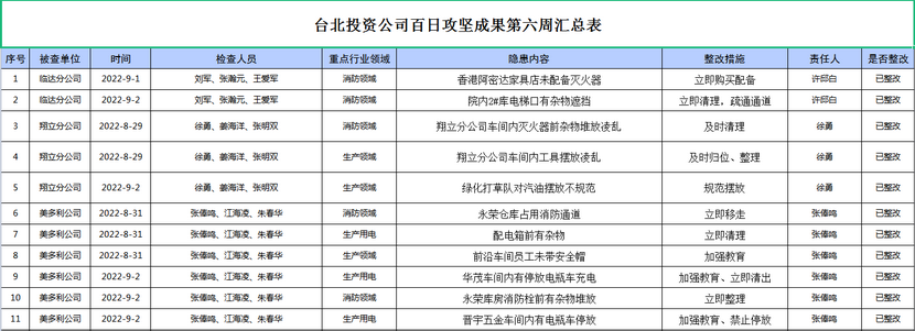 臺北投資公司百日攻堅成果第六周匯總表