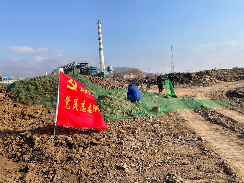 三是做好大型裸露地塊苫蓋。20日下午,西風正勁,來自海州灣、翔立、美多利、資源公司、猴嘴辦、養殖辦、留守處、臨達、機關等9個黨支部的黨員突擊隊、志愿服務隊等,全員投入緊張的防塵苫蓋工作中。經過半天搶工,100余畝祼土得到及時苫蓋。