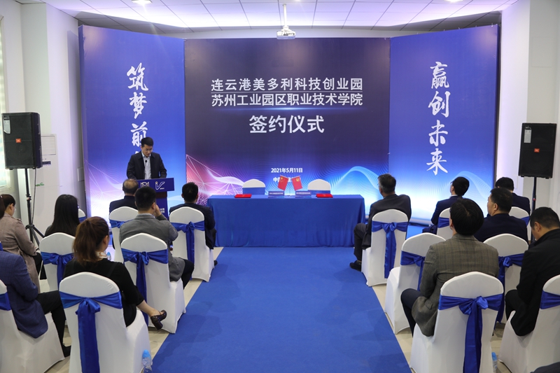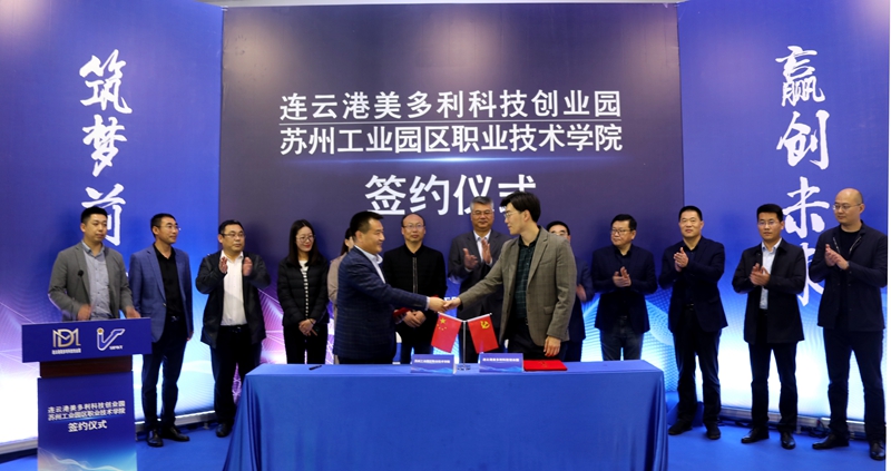 511日,投資公司美多利科創園與蘇州工業園區職業技術學校“產教融合”項目簽約儀式在“海客”眾創空間隆重舉辦。開發區教育工委委員、社會事業局教育處處長劉益國等領導,蘇州工業園區職業技術學院繼續教育學院院長魏剛等校方代表,投資公司全體領導班子,美多利公司全體領導班子參加了簽約儀式。