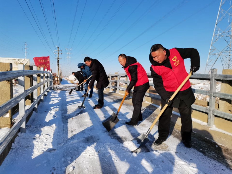 ? 冷冽的寒風(fēng)中,黨員先鋒隊(duì)、青年突擊隊(duì)、巾幗突擊隊(duì)沖鋒在前,有序地清理道路、生產(chǎn)現(xiàn)場(chǎng)、商戶門口等地方的積雪。大家有的揮舞鐵锨,鏟冰除雪;有的手拿掃帚,清掃路面。道路以及進(jìn)出口的積雪情況得到緩解,及時(shí)保證了道路安全暢通,傳遞了一份溫暖和正能量,也充分體現(xiàn)了黨員干部的先鋒模范作用。
