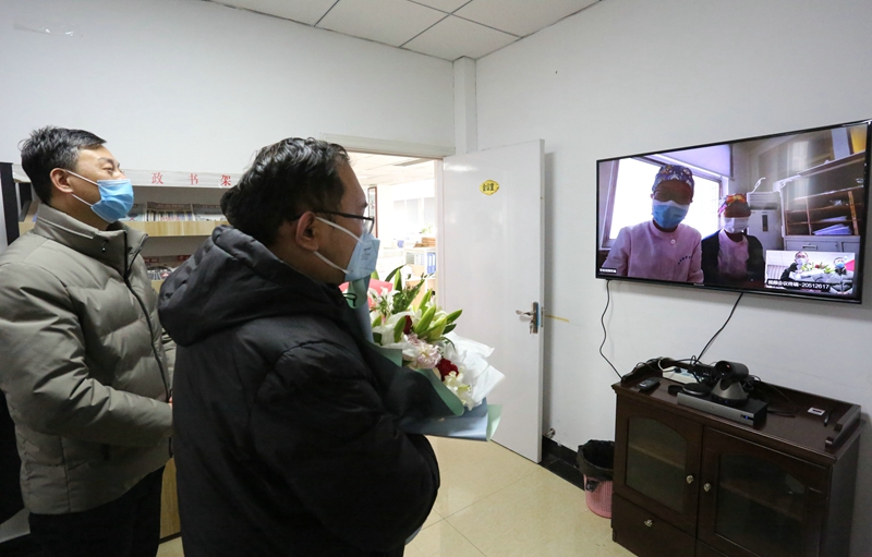 吳衛平對中醫院醫護人員投身戰“疫”一線,用生命拯救生命,展現出的舍生忘死、救死扶傷的高尚職業道德,表示了崇高的敬意,同時也指出投資公司與中醫院還有一段神奇的紐帶:公司職工在一場意外休克中,幸得中醫院護士全力搶救才轉危為安,而這名護士既是我公司職工的家屬,也是中醫院廣大奮戰在疫情防控一線醫護者中的一員。這次來一是向中醫院的“逆行者們”表示敬意;二是向救死扶傷、醫者仁心的護士表示感謝;三是代表公司工會看望慰問共戰疫,齊奉獻的職工家庭。