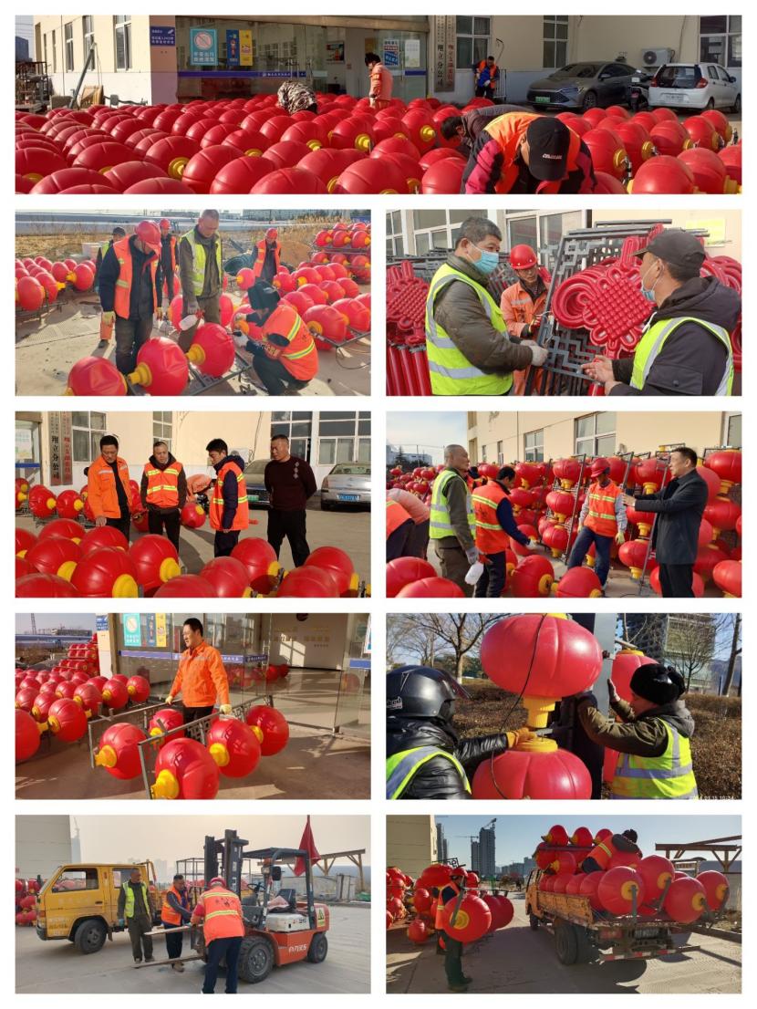 突出一個“聚”字,與以往不同的是,這次燈籠安裝工作也得到了兄弟單位的大力支持,益豐、盛達、資源、悅升公司在自身也有工程人手緊張的情況下先后派遣了12人次的電工、安全員、運輸車輛駕駛員等精兵強將支援本次燈籠懸掛精品工程突擊工作。人多力量大,白天安裝工程結束后,每天晚上公司組織專人對已安裝好燈籠的每條路段進行夜間巡查,對不亮的燈籠做好標記,白天進行修理,保障安裝的燈籠中國結百分之百的亮化率。