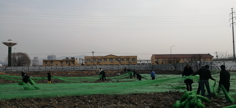 在前期專項檢查中,發現車站小灘處存在10畝裸土,急需覆蓋,海州灣公司聞令而動,迅速組織黨員職工奔赴現場,齊心協力投入鋪設工作,并于現場對已覆蓋防塵網的間隙、完整度進行復查,保證覆蓋的有效性,以整潔有序的環境喜迎新春佳節。