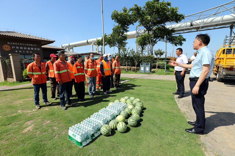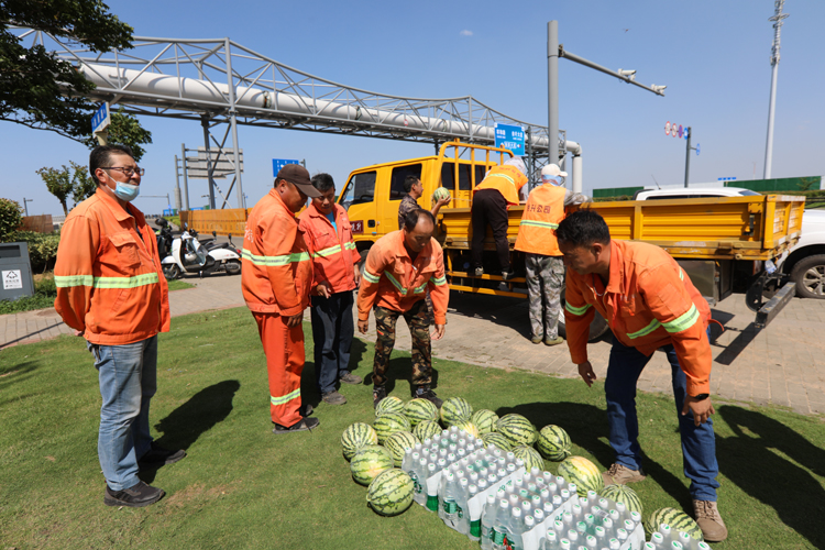 75日下午,投資公司黨委副書記、工會主席劉剛深入一線看望慰問高溫作業(yè)職工,為他們送去礦泉水、西瓜等防暑降溫物品,囑咐他們調(diào)節(jié)好高溫作業(yè)時間,用好防暑降溫藥品包,確保高溫作業(yè)安全。